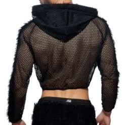 Veste trÚs sexy en mesh transparent non doublé de couleur unie. Sa coupe trÚs ajustée a été raccourcie pour dévoiler vos abdos. Plumes synthétiques sur la capuche et le long des manches. Fermeture Eclair. Logo Addicted en silicone sur la poitrine.