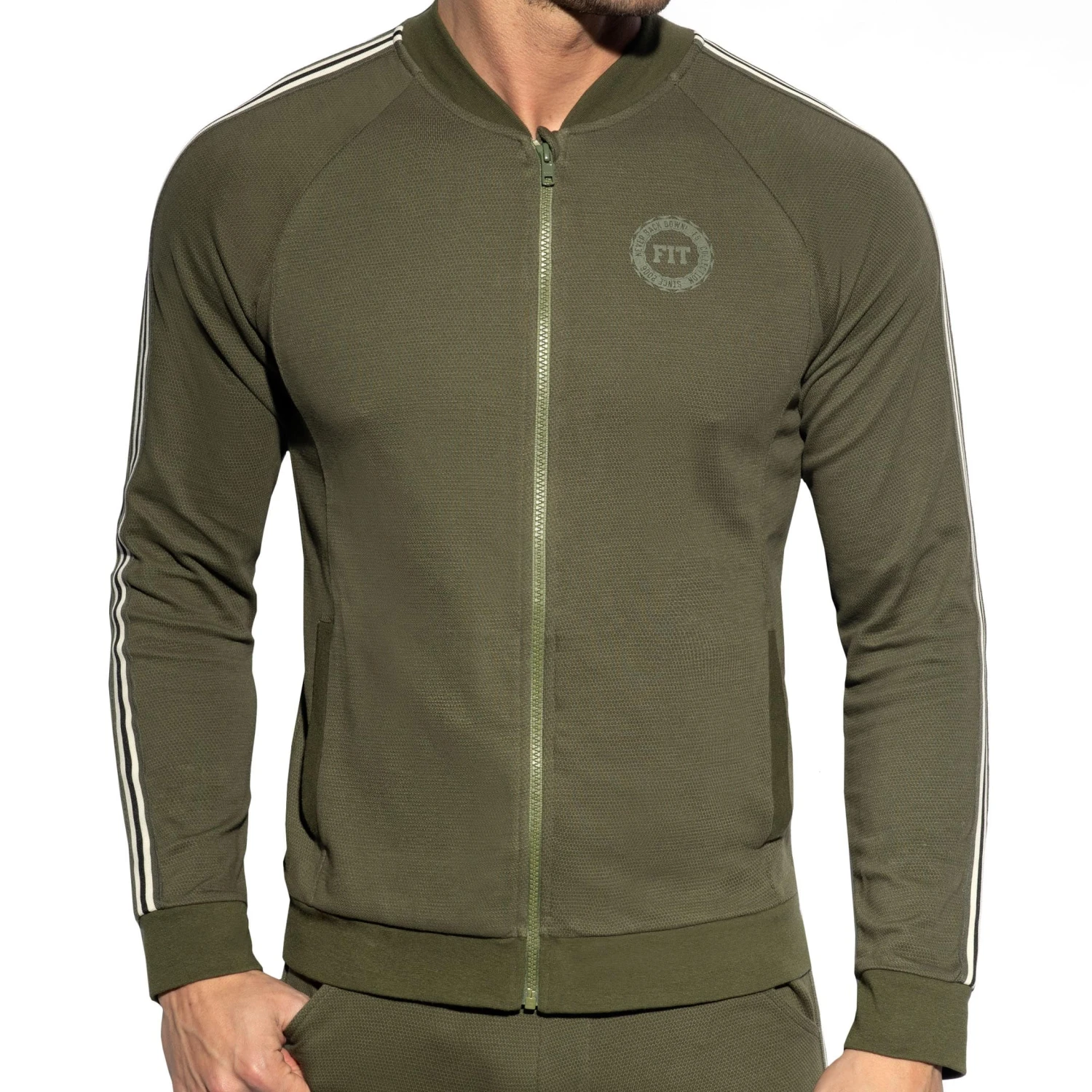 Veste ajustée en coton piqué doux et onfortable. Bande sport tricolore le long des manches et des épaules. 2 grandes poches. Bandes élastiques aux poignets et à la taille. Fermeture Eclair. Ecusson ES Collection FIT sur la poitrine.