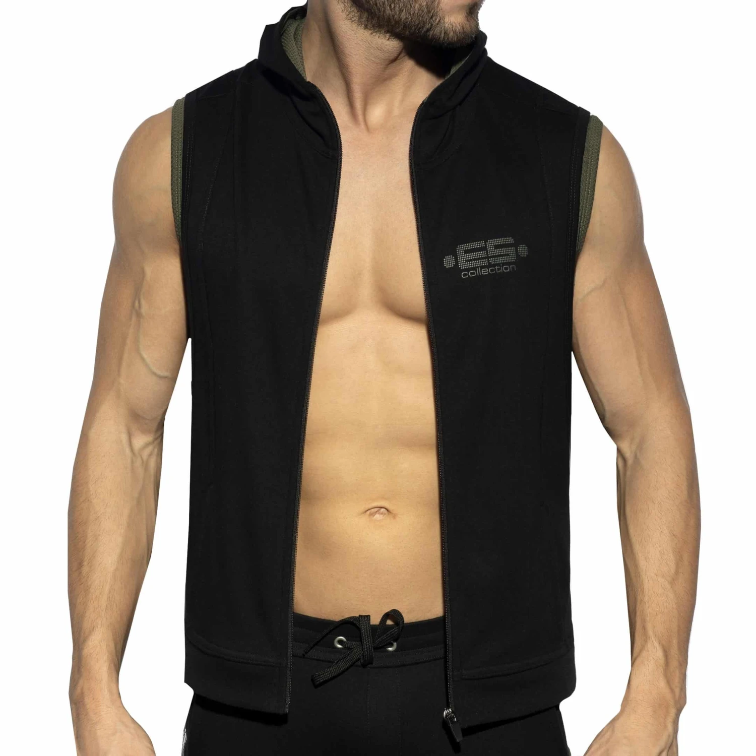 Veste sans manche très confortable en mĂ©lange de coton et microfibre stretch. Fermeture Eclair intĂ©grale. Tissu contrastĂ© texturĂ© façon nid d’abeilles sur les cĂ´tĂ©s et la doublure de la capuche. 2 poches. Logo ES Collection imprimĂ© sur la poitrine gauche.
